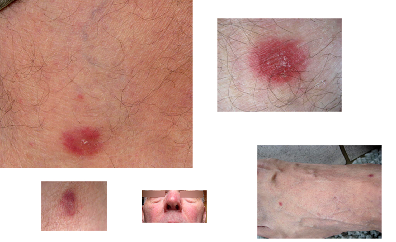 Die jetzt auftretenden Flecke (klein bis groß, von den Füßen bis zur Hüfte, tiefrot mit schuppiger Mitte) hatte ich auch schon einmal. Auch sie sind vor rund zwei Jahren verschwunden, aber jetzt plötzlich zahlreich an beiden Beinen (ca. 20 Male von 1mm bis ca. 15mm wieder da.