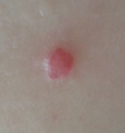 Ist zwar schon ein bisschen was her, aber hier nochmal die Auflösung: Es muss wohl ein Blutschwamm sein. Die kleinen sind harmlos, können auf Wunsch (genau wie Muttermale) vom HAutarzt entfernt werden. Ist nichts Schlimmes!