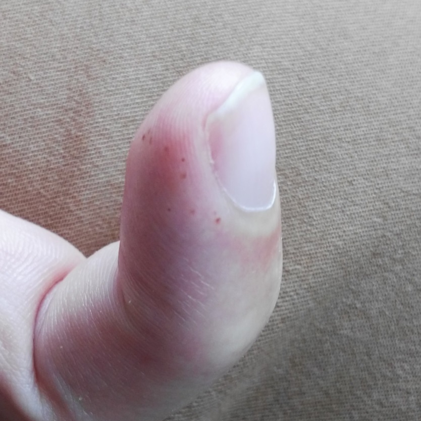 Ich habe das gelegentlich an verschiedenen Stellen der Hände. Juckreiz oder Entzündung tritt nur auf wenn man kratzt.