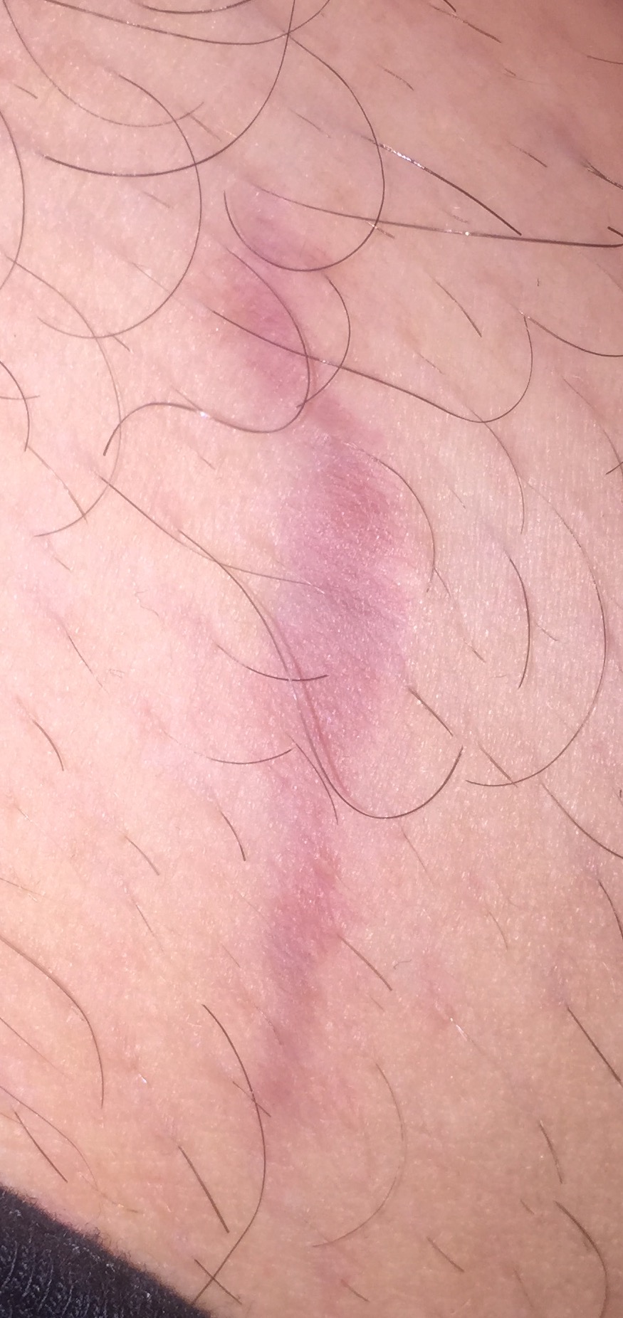 Habe das seit Monaten, links und rechts neben der Leiste, 2-3 cm lange rote Streifen die so leicht eingedellt sind.. Zuerst dachte ich das sich meine Unterhose sich reingeschlüpft hatte, aber dem ist nicht so..