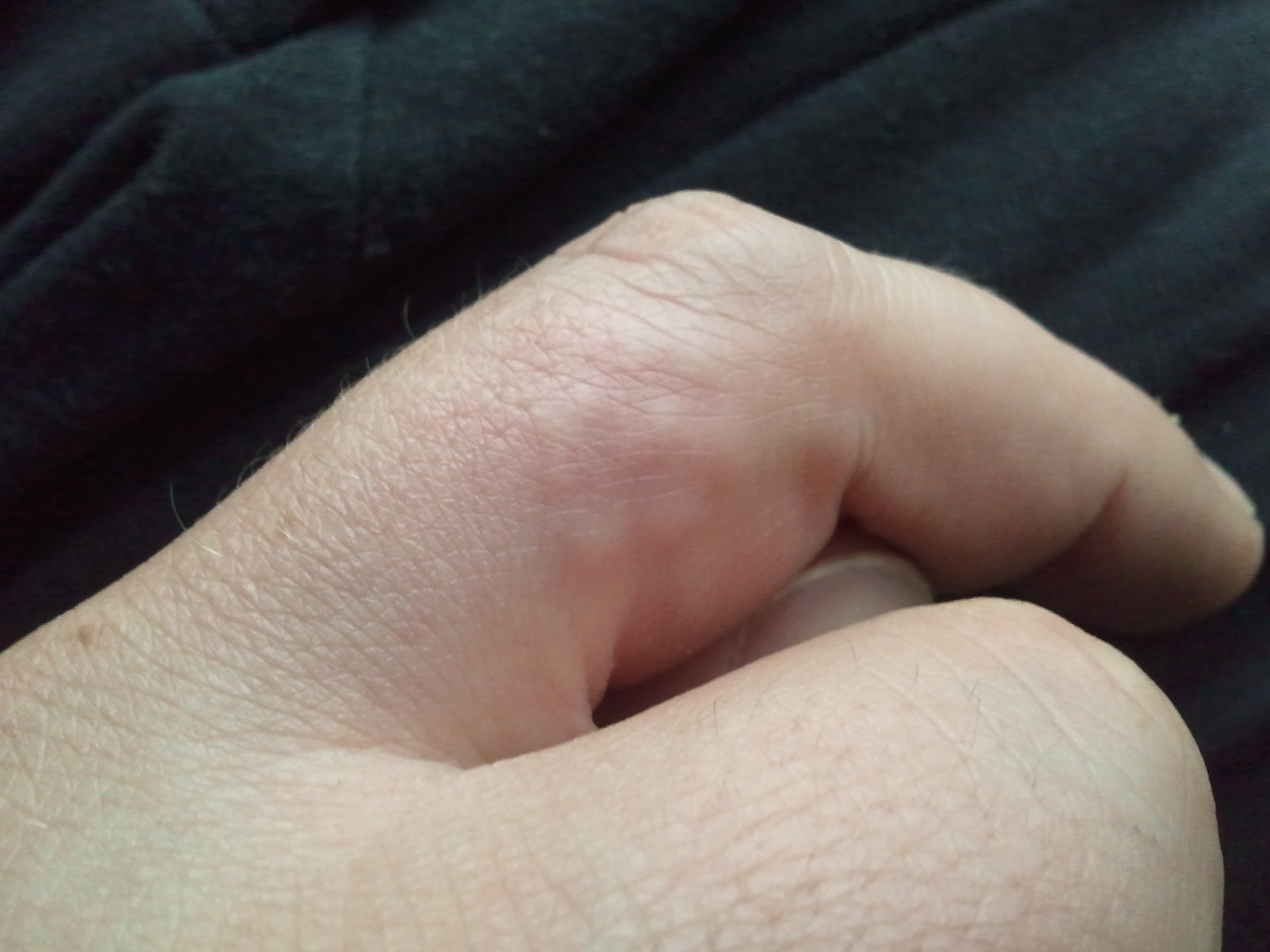 Angefangen hat alles damit, dass ich irgendwann einmal einen kleinen "Buckel" an meinem linken Mittelfinger spürte. Soweit ich mich erinnern kann lag bei dem bemerken damals keine Hautverletzung oder sonstirgendetwas vor, das war nur eine Erhebung, am Rand leicht gerötet..