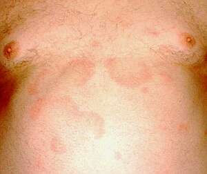 immer wenn ich mich im Westerwald aufhalte, was leider haeufig vorkommt, da ich dort wohne, bekomme ich diese Flecken. Sie fangen als runder daumengrosser Punkt an und werden dann groesser, wobei sie zu zerfledderten Ringen mutieren. Der auftretende Juckreiz ist unterschiedlich von kaum merklich bis unangenehm.