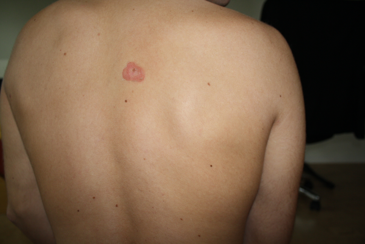 Am Freitag hatte ich eine kleine rote Stelle am Rücken und bin damit zu meiner Mutter gegangen. Sie meinte es sehe aus, wie ein Pickel und ich hab mir daher keine weiteren Gedanken gemacht. Als es am Samstag Abend nicht wirklich besser aussah, hab ich einfach einwenig Cortison-Salbe raufgeschmiert.. Es hat sich allerdings nicht verbessert. :/ Hat jemand eine Idee was das sein könnte?