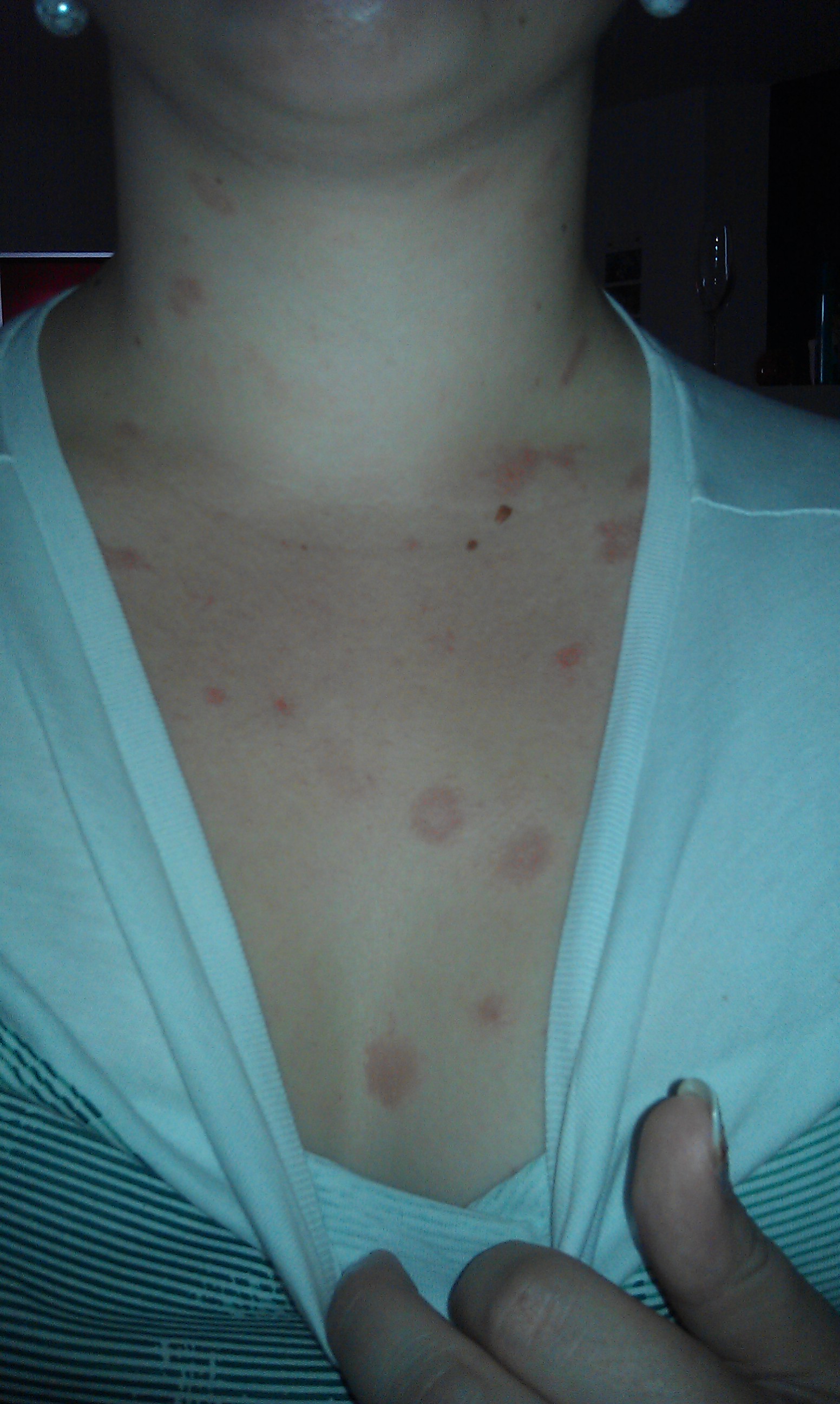 ich habe seit etwa einer woche einen schlimmen ausschlag auf der brust, bauch und hals. langsam geht es auch ins gesicht über ich werd wahnsinnig :/ ich hab sogar das gefühl dass es zwickt bzw sogar wehtut, kann aber auch nur einbildung sein ..