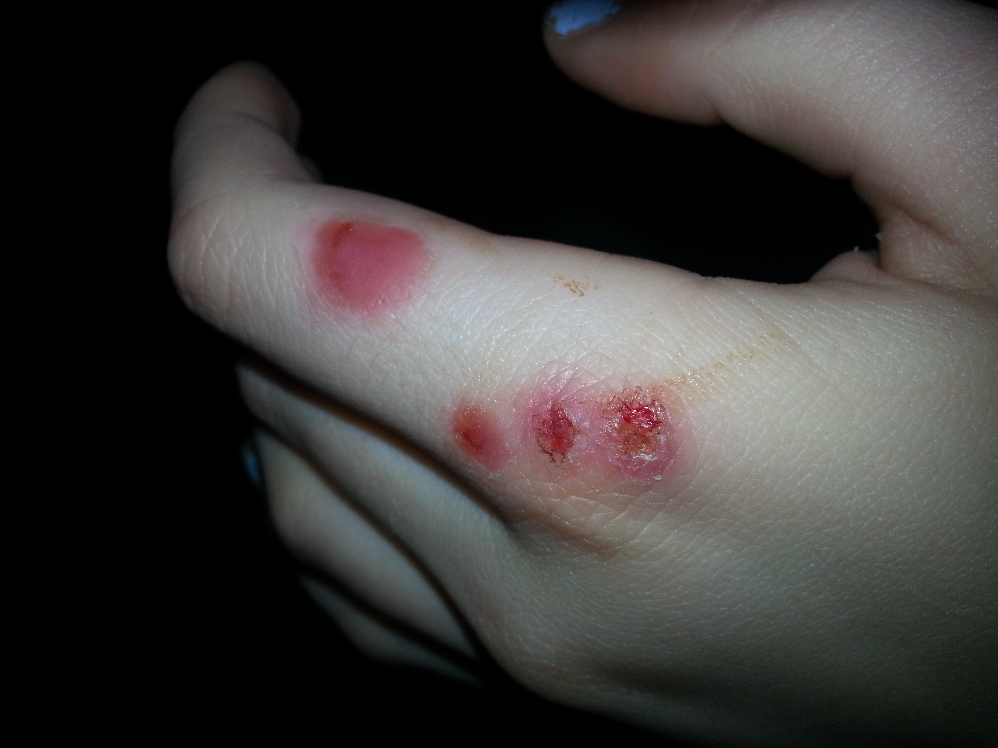 Ich hab schon ziemlich lange damit zu tun.. Anfang hatte ich eine an meiner Fußsohle, ich glaub inzwischen ist sie weg. Aber es haben sich extrem viele Stellen an meiner Hand gebildet, die auch sehr wehtun oder jucken.