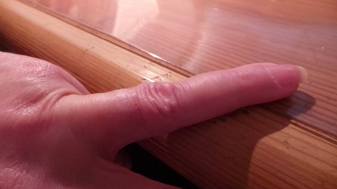 Ich werde anbei ein Foto davon posten. Es befindet sich auf dem mittleren Gelenk und ist leicht rot.