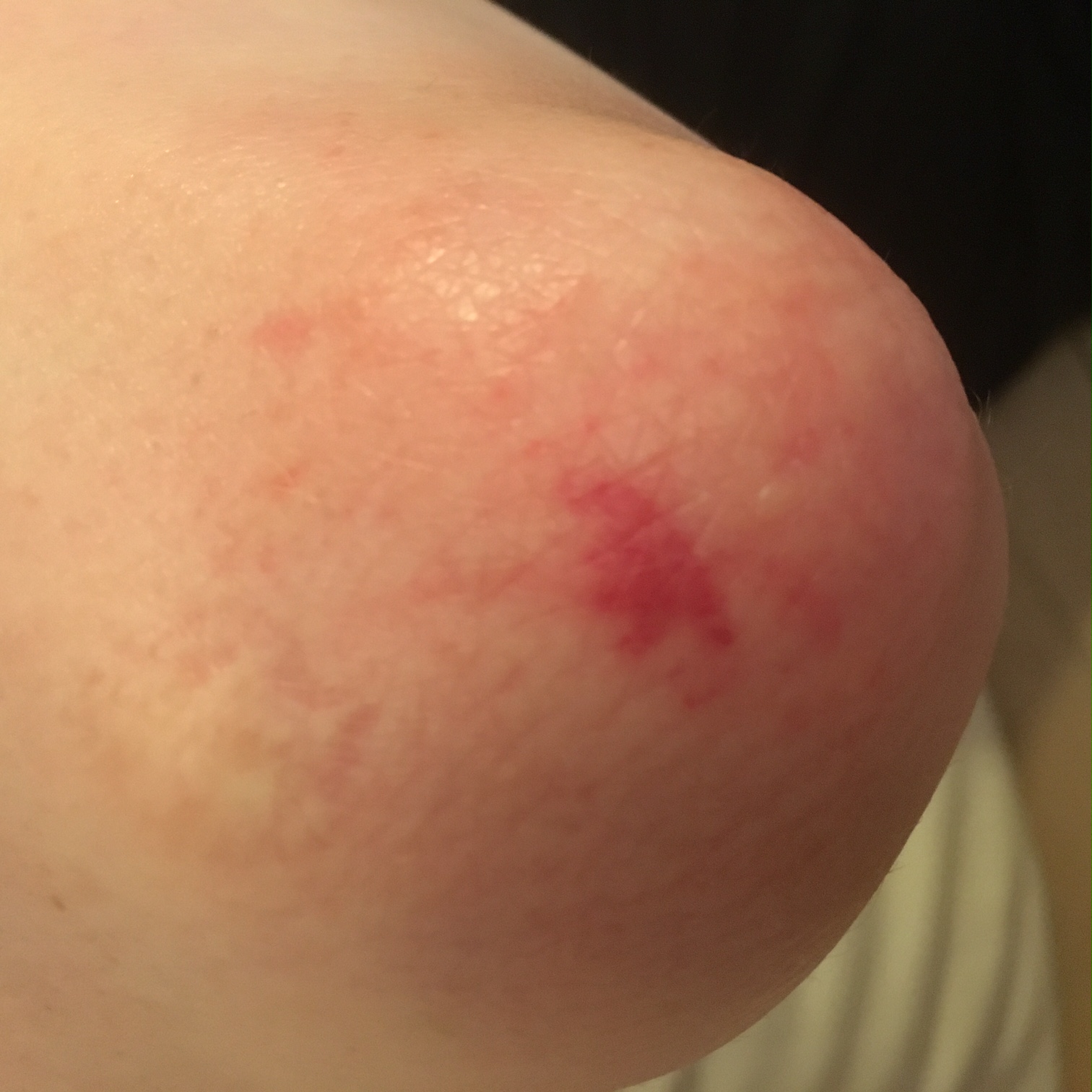 Vorhin ist mir ein komischer rote Fleck an meinem rechten Ellenbogen aufgefallen. Ich saß ne gewisse Zeit am Notebook mit aufgestützten Ellenbogen, vielleicht ist die Haut etwas gereizt. Aber es schmerzt nicht, sieht etwas aus, als ob ne leichte Blutung unter der Haut ist. Woher könnte das kommen? Im Sommer hab ich an beiden Ellenbogen oft Ausschlag wegen Allergie, aber dann eher so viele kleine Stellen und nicht so wie das hier. Hat jemand ne Idee, was das sein könnte?